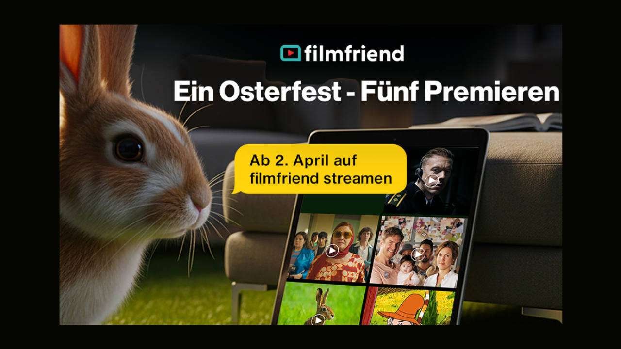 Zum Osterfest erwartet Sie ein besonderes Highlight: Fünf Neuheiten verstecken sich in unserem filmischen Osternest! Zwei Spielfilme, eine Serie, ein Dokumentarfilm und eine Animationsserie für Kinder – mehr wird noch nicht verraten. Ab dem 02. April 2026 sind die Überraschungen auf der Startseite von filmfriend zu entdecken.